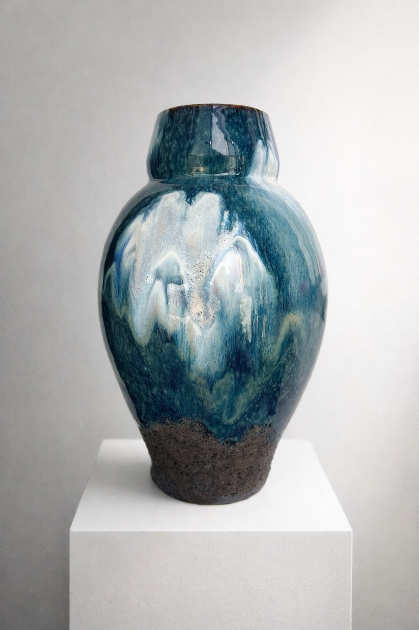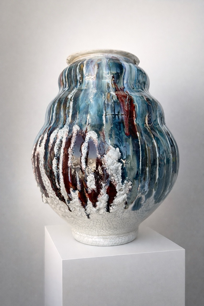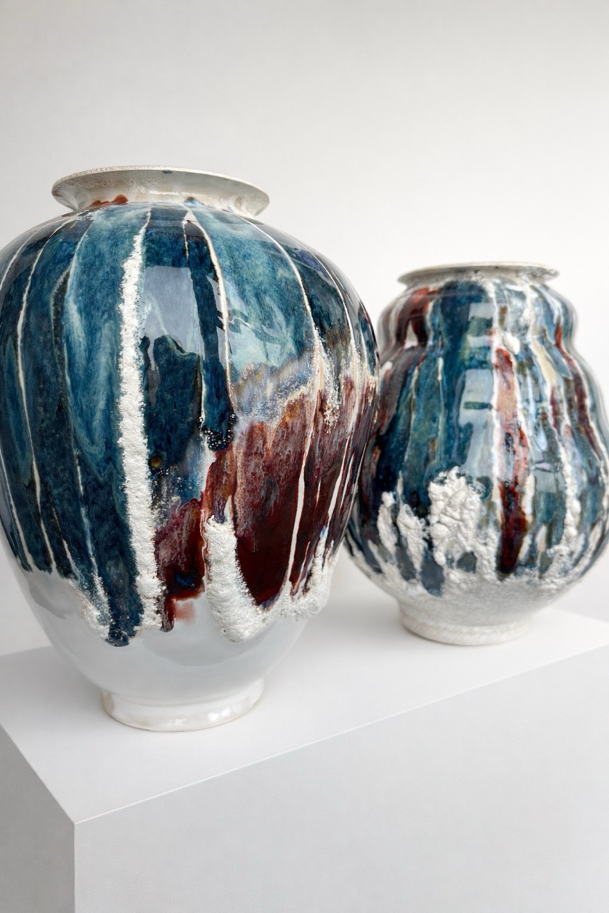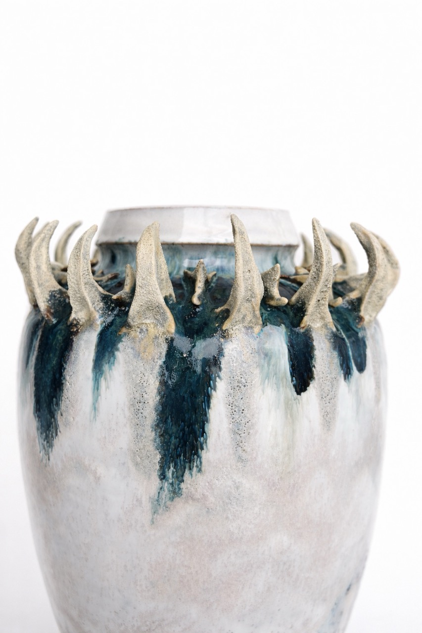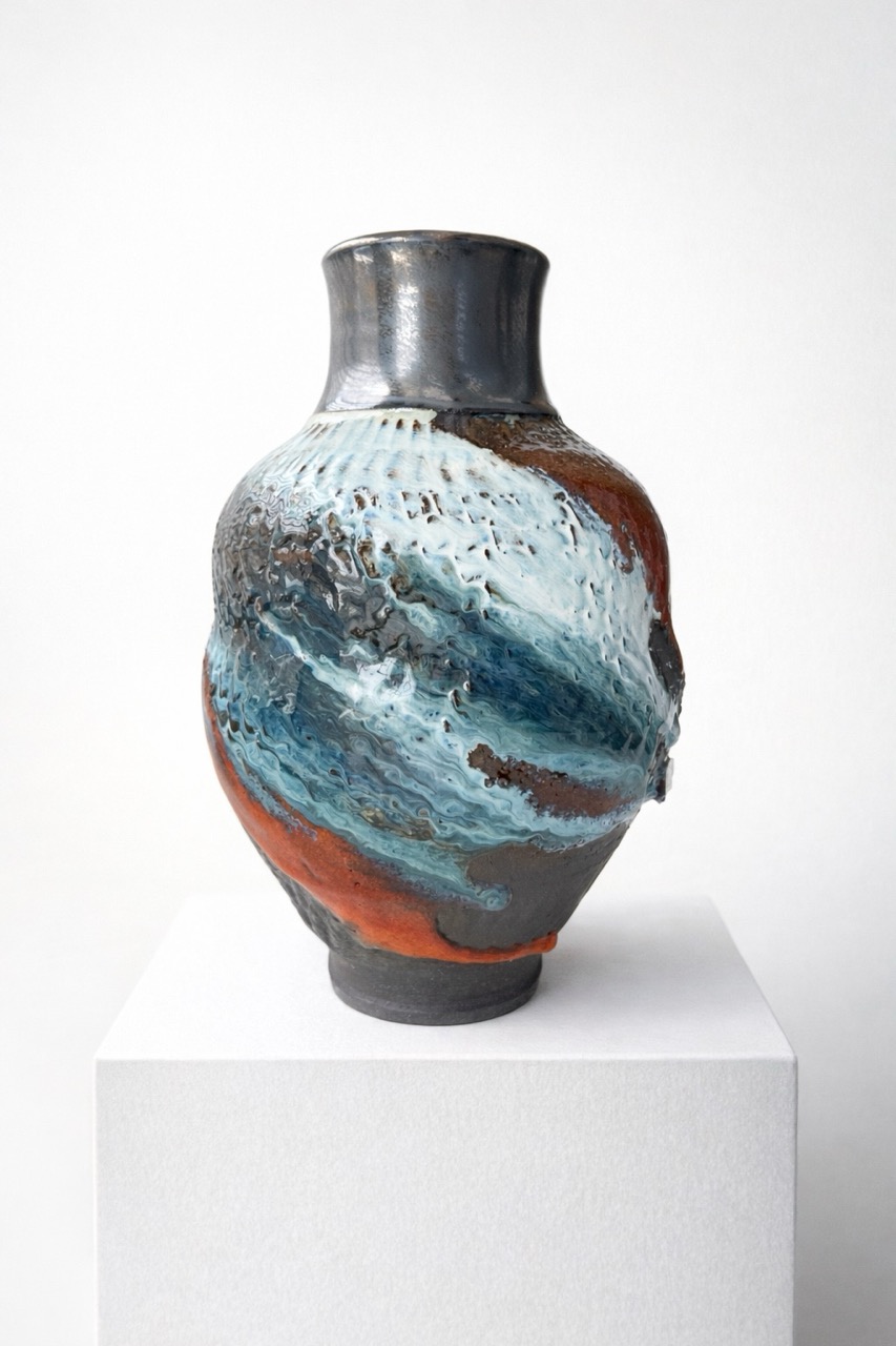 Процесс начинается с «идеальной» формы на круге, которую я намеренно нарушаю. Встраиваю в тело сосуда новые, диссонирующие элементы и перегружаю глазурь, позволяя материалу вступить в игру со случайностью, обнажить скрытые слои и текстуры.